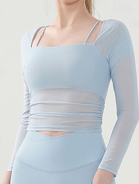Damen Trainingshemd Basic-Crop-Tops Mode Atmungsaktiv Netz Langarm Sport Einfarbig Oberteil Für Fitnessstudio sportlich Sport Schlank Sportkleidung