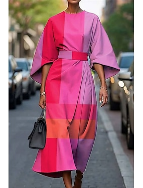 Damen Langes Kleid Maxikleid Freizeitkleid Sommerkleid Mode Modern Täglich Date Wochenende Normale Passform Geometrisch Dreiviertelarm Rundhalsausschnitt Blau Rosa Purpur Fuchsie Sommer