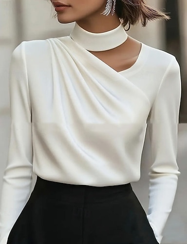 Damen Bluse Elegante Oberteile Chiffon Tops Gerafft Rüsche Patchwork Einfarbig Einfach Elegant Vintage Niedlich Langarm Polokragen Normale Oberteile Täglich Arbeit Ferien Weiß Herbst Winter
