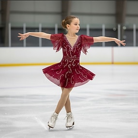 Eiskunstlaufkleid Damen Mädchen Eislaufen Kleid Rot Patchwork Offener Rücken Netzstoff Hohe Elastizität Training Wettbewerb Eiskunstlaufkleidung Klassisch Kristall / Strass Langarm Eislaufen