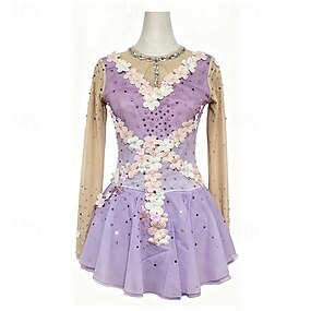 Eiskunstlaufkleid Damen Mädchen Eislaufen Kleid Violett Patchwork Netzstoff Hohe Elastizität Training Wettbewerb Eiskunstlaufkleidung Klassisch Kristall / Strass Langarm Eislaufen Eiskundstlauf