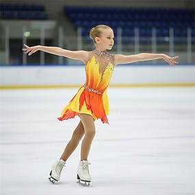 Eiskunstlaufkleid Mädchen Eislaufen Kleid Rot gelb Patchwork Offener Rücken Dehnbar Training Wettbewerb Eiskunstlaufkleidung Klassisch Kristall / Strass Ärmellos Eislaufen Eiskundstlauf