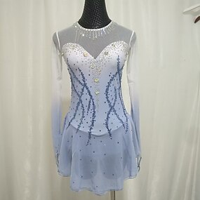 Eiskunstlaufkleid Damen Mädchen Eislaufen Kleid Himmelblau Patchwork Daumenloch Spandex Netzstoff Hohe Elastizität Training Wettbewerb Eiskunstlaufkleidung Klassisch Kristall / Strass Langarm