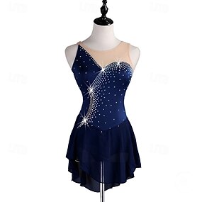 Eiskunstlaufkleid Damen Mädchen Eislaufen Kleider Marinenblau elastisch Ausbildung Wettbewerb Eiskunstlaufkleidung Kristalle Ärmellos Eislaufen Eiskundstlauf