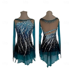 Eiskunstlaufkleid Mädchen Eislaufen Kleid Bule schwarz Patchwork Asymmetrischer Saum Hohe Elastizität Training Wettbewerb Eiskunstlaufkleidung Klassisch Kristall / Strass Langarm Eislaufen