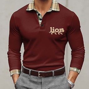 Herren Karomuster Waffel-Poloshirts Golfshirt Langarm Polo-Shirts Hemden mit Kragen Lässig Urlaubskleidung Formelle Kleidung Festivalkleidung Knöpfe 3D-Druck Frühling Herbst Winter Braun