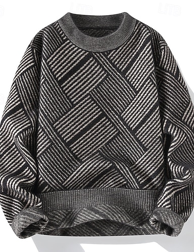 Herren Pullover Strickpullover Gerippt Stricken Normale Oberteile Strick Streifen Rundhalsausschnitt Modisch Basic Urlaub Freizeitskleidung Bekleidung Herbst Winter Schwarz M L XL