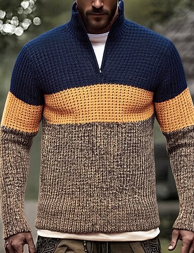 Herren Pullover Pullover mit Viertelreißverschluss Strickpullover Gerippt Stricken Normale Oberteile Strick Farbblock Troyer Halber Reißverschluss Modisch Brautkleider schlicht Urlaub