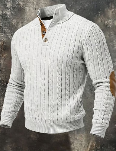 Herren Pullover Strickpullover Gerippt Stricken Normale Oberteile Knöpfe Gestrickt Farbblock Hoher Ausschnitt Mode Streetwear Lässig Alltagskleidung Bekleidung Herbst Winter Schwarz Weiß M L XL