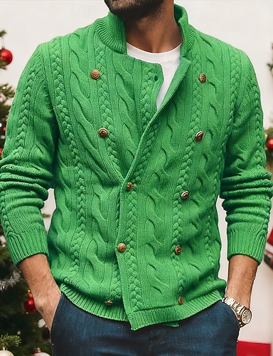 Herren Strickjacke Gerippt Stricken Abgeschnitten Gestrickt Königin Anne Aufwärmen Moderne zeitgenössische Alltagskleidung Ausgehen Bekleidung Frühling & Herbst Grün M L XL