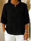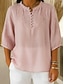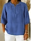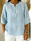 Damen Baumwoll-Leinen-Hemden Sommeroberteile Bluse Täglich Lässig Dreiviertelarm Rundhalsausschnitt Normale Oberteile Schwarz Himmelblau Orange Aprikose Sommer Frühling Herbst