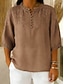 Damen Baumwoll-Leinen-Hemden Bluse Einfach Basic Modern Langarm V Ausschnitt Normale Oberteile Ferien Ausgehen Wein Leicht Braun Braun Grün Sommer
