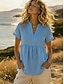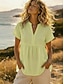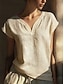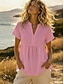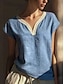 Damen Hemd Bluse Kunstbaumwollleinen Gerafft Knöpfe Einfach Vintage Stilvoll Kurzarm V Ausschnitt Normale Oberteile Täglich Ferien Ausgehen Blau Weiß Gelb Rosa Sommer Frühling