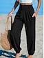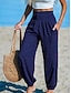 Damen Hose aus Baumwollleinen Lange Unterhosen Baggy-Hosen Abgeschnittene Hose Streetwear Einfach Lässig Knöchellang Mittlere Taille Einfach Tasche Elastischer Bund Baggy Weich Außenbereich Bequem