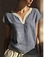Damen T Shirt T-Shirt aus Baumwollleinen T-Shirt Patchwork Einfach Klassisch Lässig Kurzarm V Ausschnitt Normale Oberteile Täglich Ausgehen Wochenende Himmelblau Aprikose Grau Sommer Frühling
