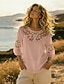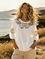 Damen Bluse Kunstbaumwollleinen Gerafft Bestickt Druck Blumen Vintage Stilvoll Dreiviertelarm Rundhalsausschnitt Normale Oberteile Outdoor Streetwear Ferien Weiß Rosa Purpur Sommer Frühling