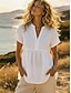 Damen Übergröße Sommeroberteile Knöpfe Einfarbig Lässig Kurzarm V Ausschnitt Normale Oberteile Ausgehen Wochenende Schwarz Weiß Königsblau Orange cremefarben Sommer