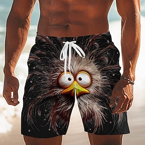 Herren Cartoon Lustig Strauße Badehosen Badeshorts Boardshorts Mittlere Taille Hawaiianisch Strandurlaub Seitentaschen Netzfutter Elastischer Kordelzug in der Taille Designer Bekleidung