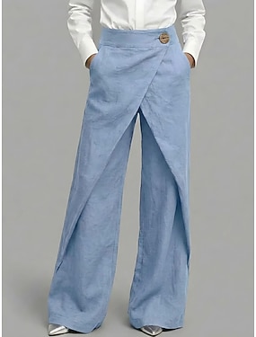 Damen Hose aus Baumwollleinen Weites Bein Chinos Sommerhose Urlaub Streetwear Basic Volle Länge Mittlere Taillenlinie Einfach Tasche Elastischer Bund Bequem Komfort Unelastisch Täglich Outdoor Straße