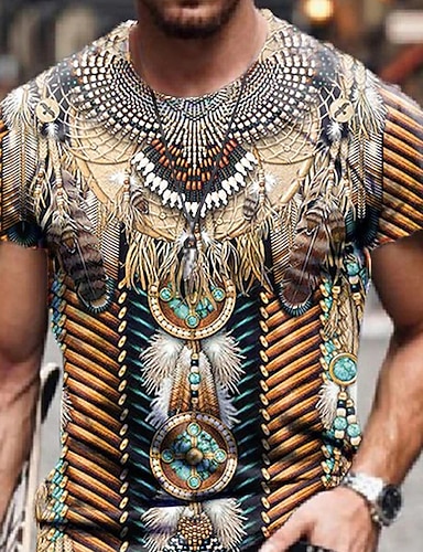Herren Unisex Stammes Grafikdrucke T Shirt Kurzarm T-Shirt 3D-Druck Rundhalsausschnitt Hemd Sport Lässig Große Größen Outdoor Straße Täglich Braun Sommer Bekleidung S M L XL XXL 3XL 4XL