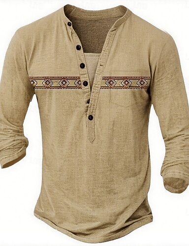 Herren Grafik Ethnisch T Shirt Henley Hemd Langarm Designer Retro Vintage Ethnisch Straße Lässig Täglich Sommer Frühling Herbst Hellgrün Blau Braun Dunkelgray Henley Henley T-Shirt