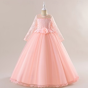 Blumenmädchenkleid Mädchen Formelle Kleidung Hochzeitskleidung Party Hochzeit Formell Mode Prinzessin Schön Pailletten Netz Langarm Rundhalsausschnitt Weiß Rosa Ab 4 Jahren