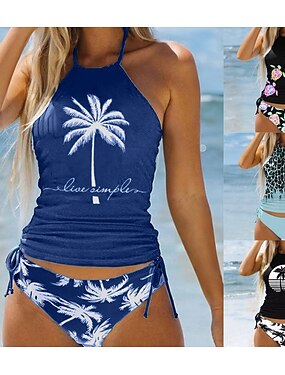 Damen Tankini Bikini, Zweiteiler Halter Offener Rücken Bademode Badeanzug Schwarz / Weiß Schwarz Schnelltrocknend Leicht Atmungsaktiv Ärmellos - Surfen Strand Schwimmen Sommer Frühling