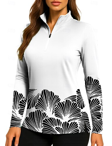 Damen Blumenmuster Oberteile Shirt Sporthemd Golf-Poloshirt Langarm Reißverschluss Blumen UPF50+ UV-beständig Hohe Elastizität Feuchtigkeitsableitend Atmungsaktiv Volleyball Tennis Golfspiel Hoher