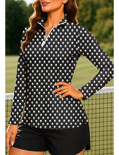 Damen Geometrisch Shirt Sporthemd Golf-Poloshirt Tennis Shirt Langarm Reißverschluss Blumen UPF50+ UV-beständig Hohe Elastizität Feuchtigkeitsableitend Atmungsaktiv Tennis Golfspiel Pickleball