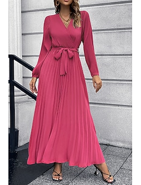 Damen Langes Kleid Maxikleid Cocktailkleid Gerafftes Kleid Elegant Mode Geburtstag Teegesellschaft Ausgehen Normale Passform Einfach Langarm V Ausschnitt Schwarz Rote Grün Sommer