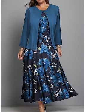 Damen Midikleid Etui-Kleid Kleid mit Jacke Elegant Cocktail Halbformelle Kleider Formell Party Hochzeitsgast Normale Passform Blumen Langarm Rundhalsausschnitt Marineblau Frühling Herbst Winter