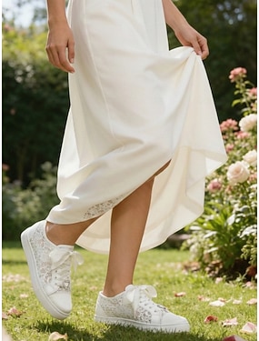 Brautschuhe mit Spitze für Hochzeiten im Freien und im Garten – bequeme Brautschuhe mit Schnürsenkeln aus Schleifenband