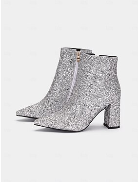 Damen Stiefeletten mit Blockabsatz in Silber Glitzer, funkelnd und schick für Partys und besondere Anlässe