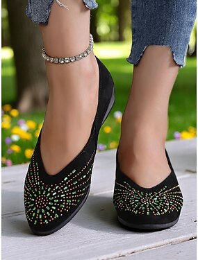 Damen-Slipper aus schwarzem Wildleder mit Spitze und Strass-Details – elegante Schuhe mit niedrigem Absatz für Damen, perfekt für lässige Outfits und Abendpartys &Bürokleidung