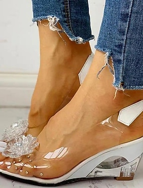 transparente Damen Keilsandaletten mit floraler Strass-Verzierung – stylische offene Schuhe für den Sommer, Partys und besondere Anlässe