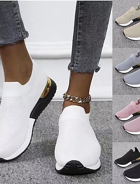 Damen Sneaker Pantoffeln Weiße Schuhe Übergrössen Flyknit Schuhe Outdoor Täglich Flacher Absatz Runde Zehe Sportlich Lässig Minimalismus Laufen Fliegendes Gewebe Loafer Hellblau Schwarz Weiß