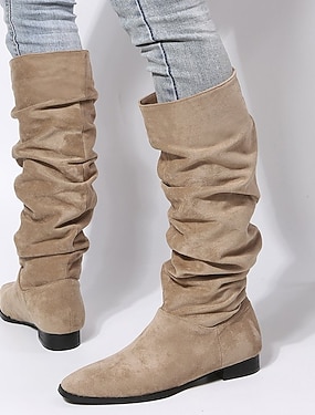 Damenstiefeletten aus Wildleder mit flacher Sohle, kniehoch, lässig, ideal für die Freizeit und bequeme Outfits