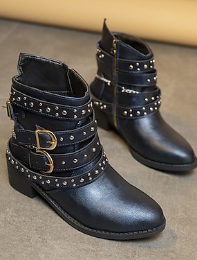 Damen Stiefeletten mit Nietenriemen und Schnallen, lässiger Retro-Style für jeden Tag
