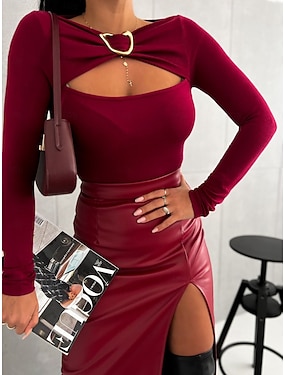 Damen Bluse Einfarbig Elegant Stylisch Basic Langarm Asymmetrisch Regulär Oberteile Alltag Spitze Rot Blau Grün Frühling Herbst Winter