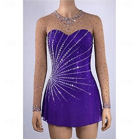Eiskunstlaufkleid Damen Eislaufen Kleid Purpur Patchwork Offener Rücken Dehnbar Training Wettbewerb Eiskunstlaufkleidung Klassisch Kristall / Strass Langarm Eislaufen Eiskundstlauf