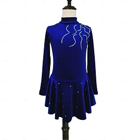 Eiskunstlaufkleid Damen Mädchen Eislaufen Kleid Dunkelmarine Patchwork Daumenloch Netzstoff Spandex Dehnbar Training Übung Professionell Eiskunstlaufkleidung Thermowarm Kristall / Strass Langarm