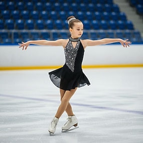 Eiskunstlaufkleid Damen Eislaufen Kleid Schwarz Patchwork Offener Rücken Dehnbar Training Wettbewerb Eiskunstlaufkleidung Klassisch Kristall / Strass Ärmellos Langarm Eislaufen Eiskundstlauf