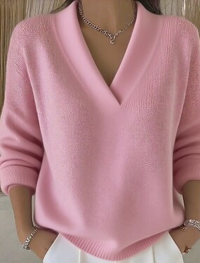Damen Pullover Streetwear Lässig Einfarbig V Ausschnitt Gestrickt Langarm Normale Oberteile Stricken Täglich Ferien Ausgehen Rosa Armeegrün Herbst Winter
