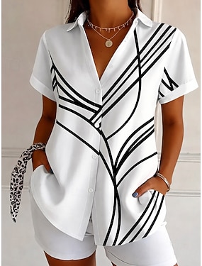 Damen Shirt Kurzarm Grafik Geometrisch Vintage Täglich Stilvoll Shirt Kragen Reguläre Tops Täglich Schwarz und Weiß Schwarz Weiß Gelb Pink Sommer Frühling