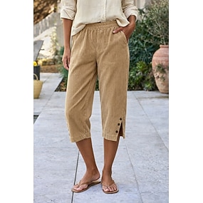 Damen Caprihose Hose Cordhose Sommerhose Urlaub Mode Alltagstauglich Wadenlang Hohe Taille Einfarbig Einfach Tasche Elastischer Bund Komfort Weich Atmungsaktiv Unelastisch Täglich Outdoor Streetwear