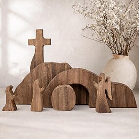 Osterdekoration: Leeres Grab mit Kreuz, hölzernes Oster-Auferstehungs-Set, Krippenszene für christliche Dekoration zu Hause, Büro oder auf dem Tisch – ein ideales Geschenk.