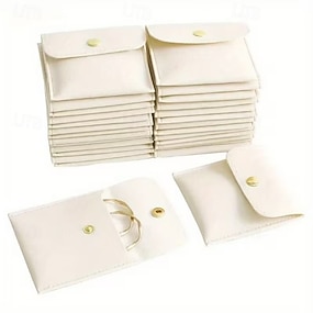 10 Schmuckaufbewahrungsbeutel aus PU-Leder mit Druckknopfverschluss, 8 x 8 cm, geeignet zur Aufbewahrung von Ringen, Halsketten und Accessoires in verschiedenen Farben.