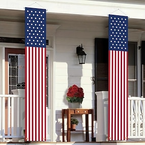 Patriotische Dekorationen 4. Juli Dekorationen Außensaison Hängehängende Amerikanische Flaggenbanner Veranda Schild für Veteranen Gedenktag Arbeitspräsidenten Wahlflagge