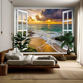 Tapisserie Banner Decke 海洋 Modern 3D Schlafzimmer Wohnzimmer Wohnheim Jugendzimmer Studentenwohnheim Wandveranda Wohndeko