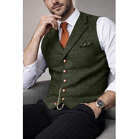 Herren-Tweedweste mit fallendem Revers, modisch für den Frühling, sechs Knöpfe, Vintage-Stil, bequem, schlicht, einreihig, V-Ausschnitt, normale Passform, grün, khaki, blau, hellgrau, dunkelgrau